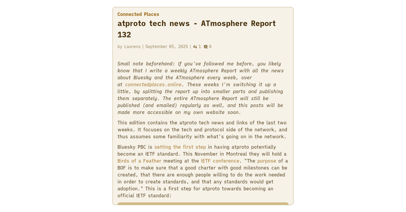 arrow-up11arrow-down1external-linkatproto tech news - ATmosphere Report 132plus-squareconnectedplaces.leaflet.pubcm0002@lemmy.world · 3 months agomessage-square0linkfedilink