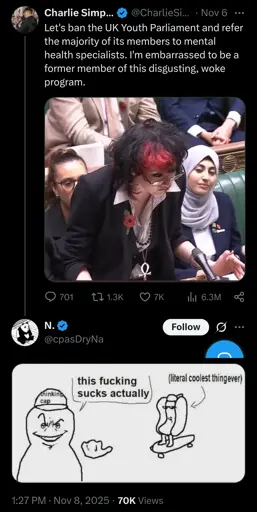 Psych: “Ok so you’re here because *checks notes* digestive on twitter didn’t like the outfit you wore at the Youth parliament.”