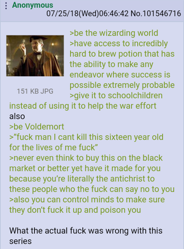 For whatever reasons, Harry, in the books, long before the movies, resonated with kids. So the series exploded. And now everyone pokes at it like it was ever supposed to be literature, with any serious thought behind it. It was all broad brush strokes on construction paper from the beginning, expecting anything in it to hold up to scrutiny is like expecting politicians to be honest and up front. It is what it is.