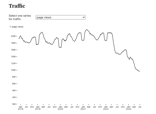 Stack Overflow has seen a substantial decline in traffic over the last year that appears to be accelerating. https://observablehq.com/@ayhanfuat/the-fall-of-stack-overflow