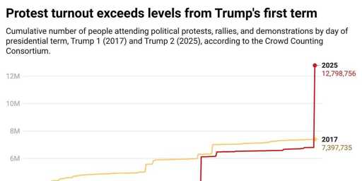 Curmuffin@fedia.io to politics @lemmy.world · 28 days agoSecond "No Kings Day" protests likely the largest single-day political demonstration since 1970, with 5.5-8.7 million participantswww.gelliottmorris.comexternal-linkmessage-square6linkfedilinkarrow-up10arrow-down10file-text